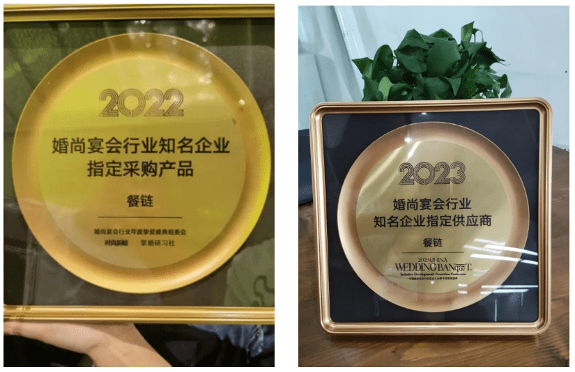 基于餐链能够给婚礼堂行业带来的价值,餐链连续2年获得了“婚尚宴会行业知名企业指定采购产品和供应商”殊荣。