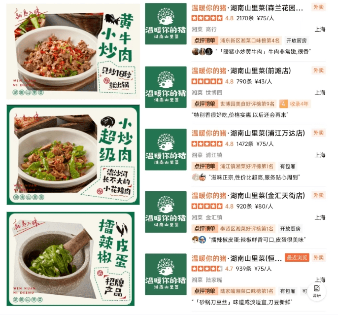 暖猪在传承传统湘味的同时,不断研发菜品创新口味,小炒黄牛肉、辣椒炒肉、擂辣椒皮蛋等极具湖南特色的菜品,深得消费者喜爱,成为了大众点评上海地区湘菜口味榜、点评榜里的常客。6年来,门店越开越多,规模不断扩大。