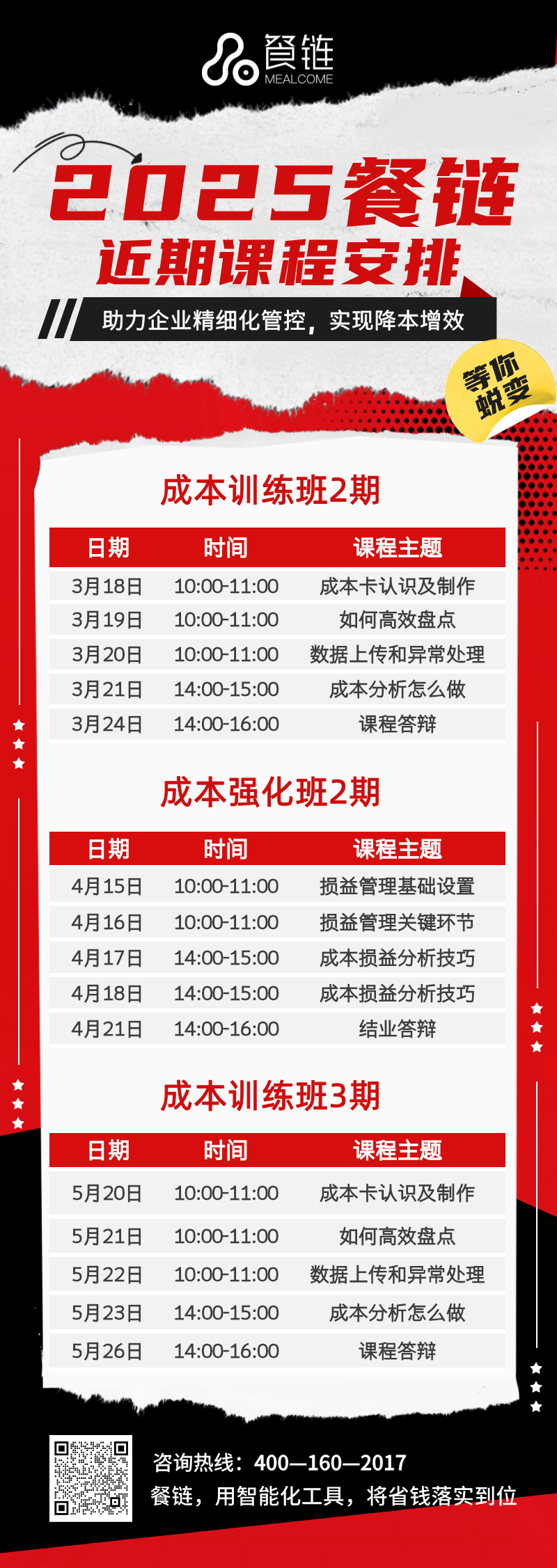 为了帮助更多企业踏入成本精细化分析的大门,餐链第二期的成本训练正在火热招生中。