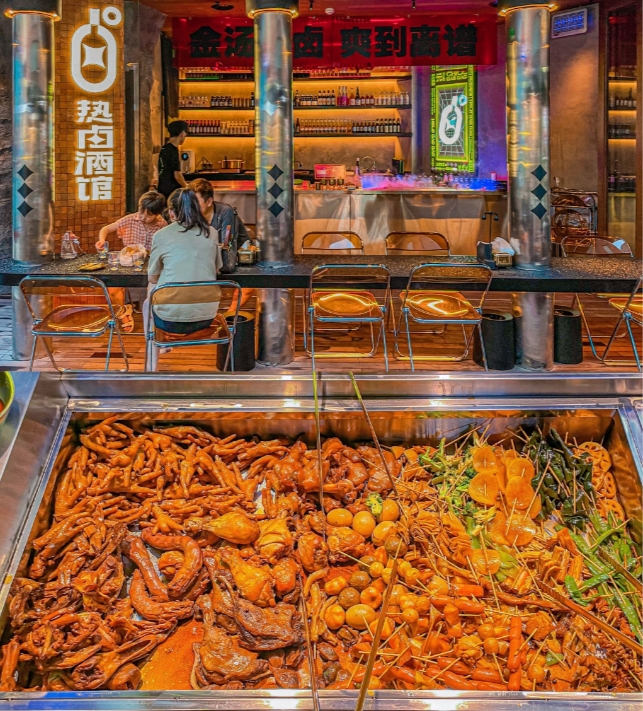 在这里,卤味不再是街边小吃的随意感,而是以 “热卤+酒馆”的新潮组合,为西安的夜生活注入了一股暖意与活力。