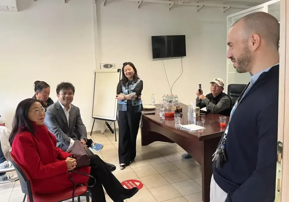 初到米兰,考察团首先拜访了ICCF (意大利中国理事基金会),与ICCF的COO, Federico Pasini,Commercial Dept Manager Pang Lan,Adiacent International COO, Maria Amelia Odetti 进行座谈,座谈会围绕中欧跨境供应链优化、中国餐饮企业出海等议题展开交流,考察团代表也分享了他们对国内的发展市场趋势与机会洞察,三方并探讨了借助协会平台加强中意贸易合作及后续反馈机制的思路。