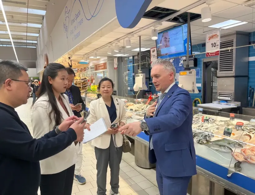 来到意大利的第三天,考察团辗转来到北部重镇的博洛尼亚,参访了Conad(意大利最大合作社零售企业)。在负责人Grassi带领下考察团对门店开展考察,Conad 的 “社区化供应链” 模式、会员制、数字化运营及可持续零售实践令考察团成员印象深刻。同时在餐饮业方面,Conad的即食食品和半成品菜(如预制意大利面、沙拉和熟食)展示了零售与餐饮融合的新可能。中国餐饮业一直在探索“零售化”的路上,如中央厨房+便利店模式,而Conad的经验则给我们更多的参考,超市可以成为餐饮品牌的重要销售渠道,同时通过高品质的即食产品提升顾客停留时间和消费频次。