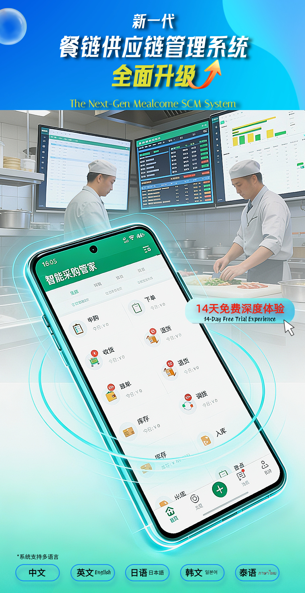 正是在这样的行业背景下,餐链餐饮供应链管理系统在2025年末正式推出多语言国际化版本。这不仅是产品功能的升级,更是餐链对湘菜乃至中餐全球化趋势的战略响应。系统旨在通过数字化、智能化技术,为出海餐饮企业提供高效、透明、合规的端到端解决方案。