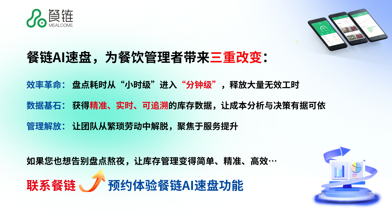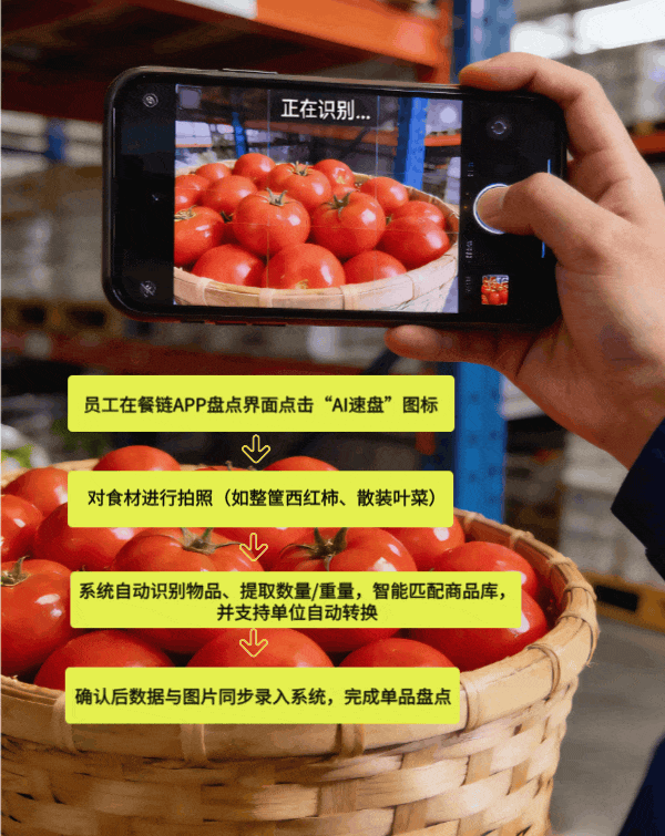 2026年1月,餐链推出的“AI速盘”功能,将餐饮盘点带入了全新3.0阶段。