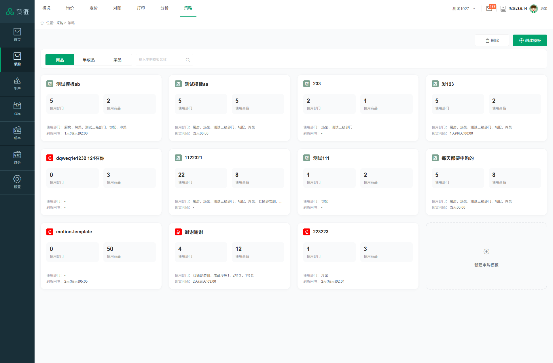 在餐链系统的采购模块中,餐饮连锁可以针对不同的使用部门、不同的商品类型,创建差异化的申购模板: